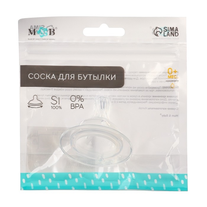 Соска на бутылочку, антиколиковая, от 0 мес., широкое горло, медленный поток, Ø50 мм.