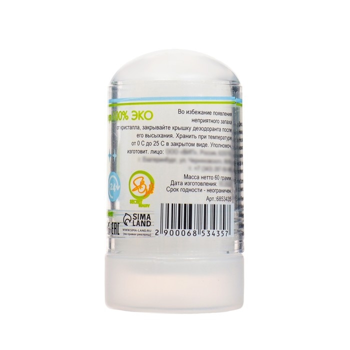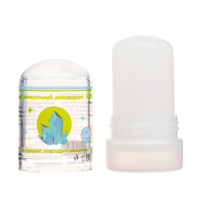 Минеральный дезодорант. Представляет собой натуральный кристалл алунит, обладающий высокой антибактериальной активностью. Предотвращает появление пота и неприятного запаха в течение всего дня. Заживляет ранки и увлажняет.
