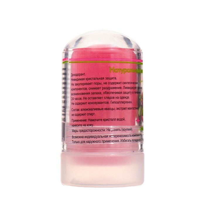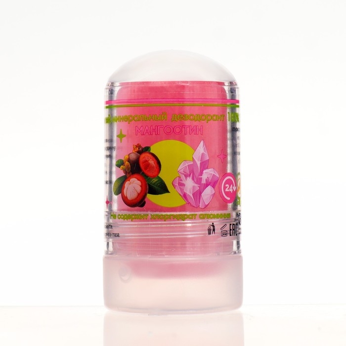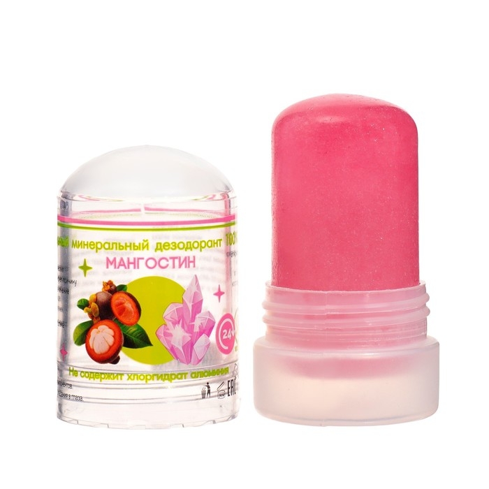 Минеральный дезодорант «Мангустин». Представляет собой натуральный кристалл алунит, обладающий высокой антибактериальной активностью. Предотвращает появление пота и неприятного запаха в течение всего дня. Заживляет ранки и увлажняет.