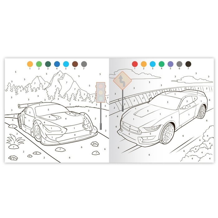 Раскраска по номерам с наклейками «Крутые гонки», 16 стр.