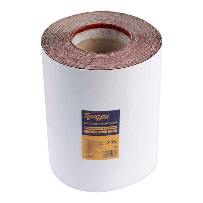Шкурка шлифовальная в минирулонах ТУНДРА, на тканевой основе водостойкая, 200мм х 20м, Р100