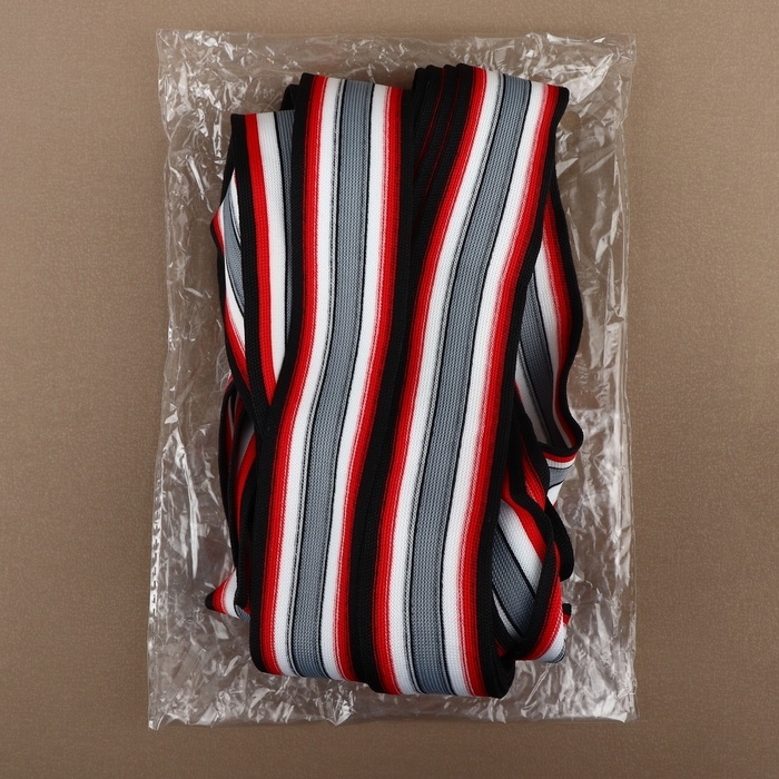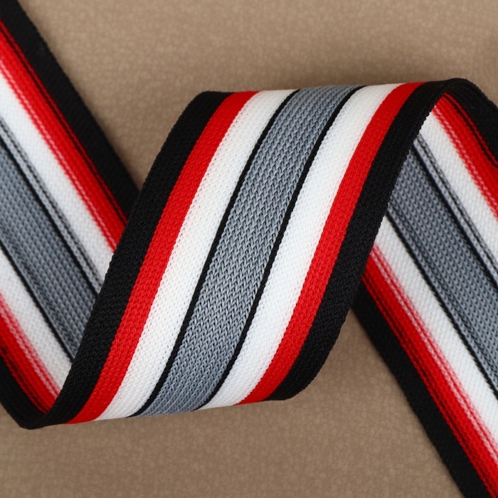 Тесьма трикотажная лампас 40 мм, 9 ± 0,5 м, цвет чёрный/красный/серый