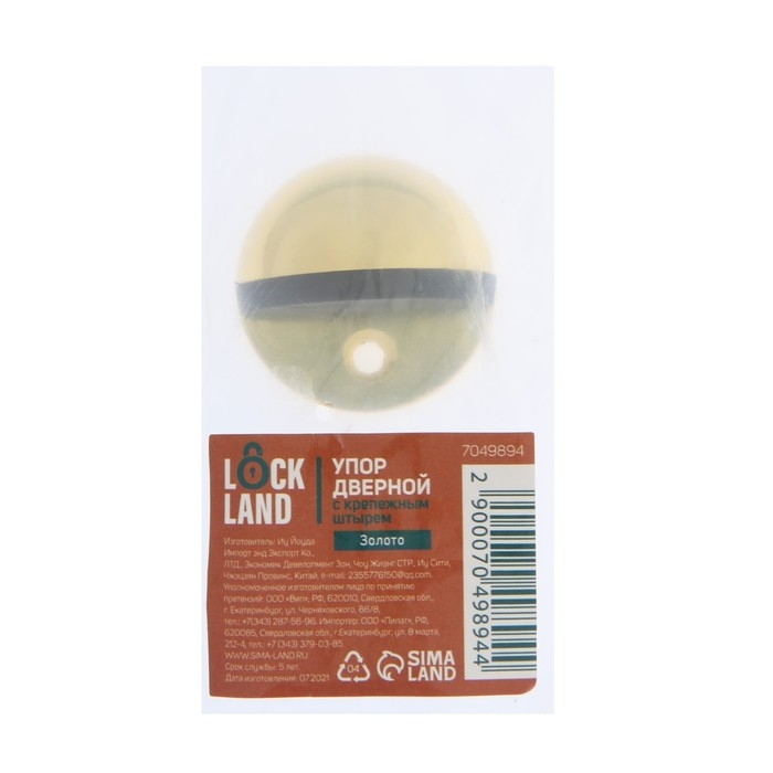Упор дверной LOCKLAND, с крепежным штырем, d=40 мм, h=25 мм, цвет золото