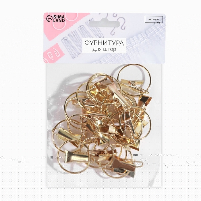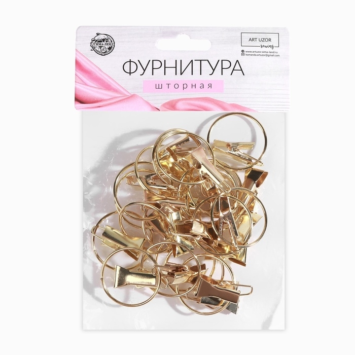 Кольцо для карниза, с зажимом, d = 30/33 мм, 20 шт, цвет золотой