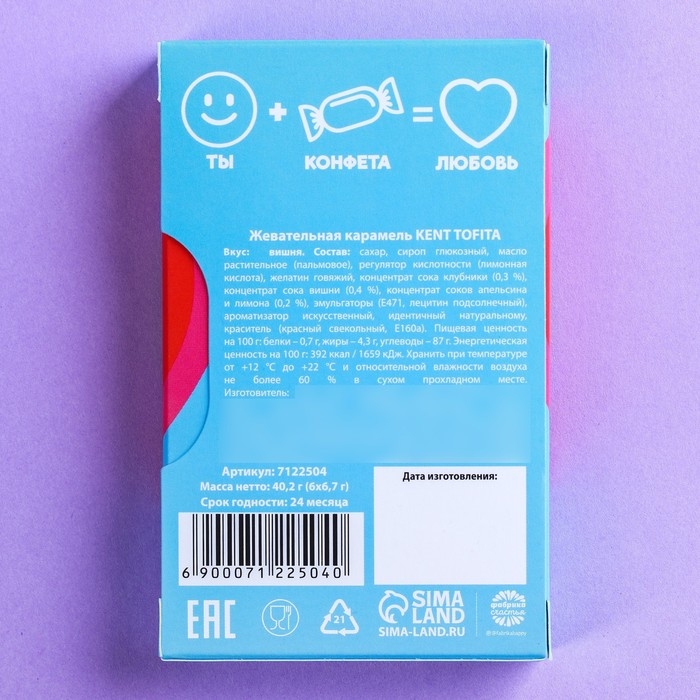 Конфеты жевательные «Ты самая особенная», вкус: вишня, 40,2 г. (6 шт. х 6,7 г.)