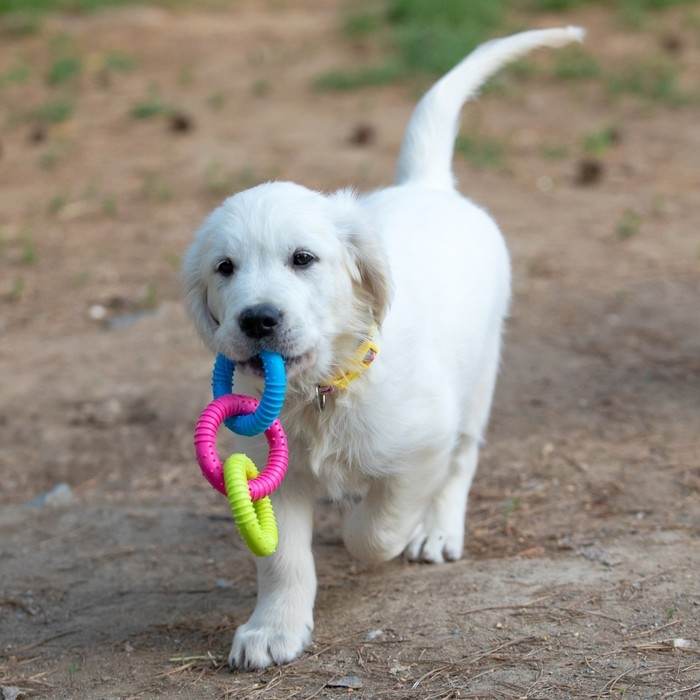 Игрушка не только развлекает щенка, но и помогает ему развивать челюстно-зубную систему, укреплять мышцы и улучшать координацию движений, легко моется и не теряет своих свойств при длительном использовании.
