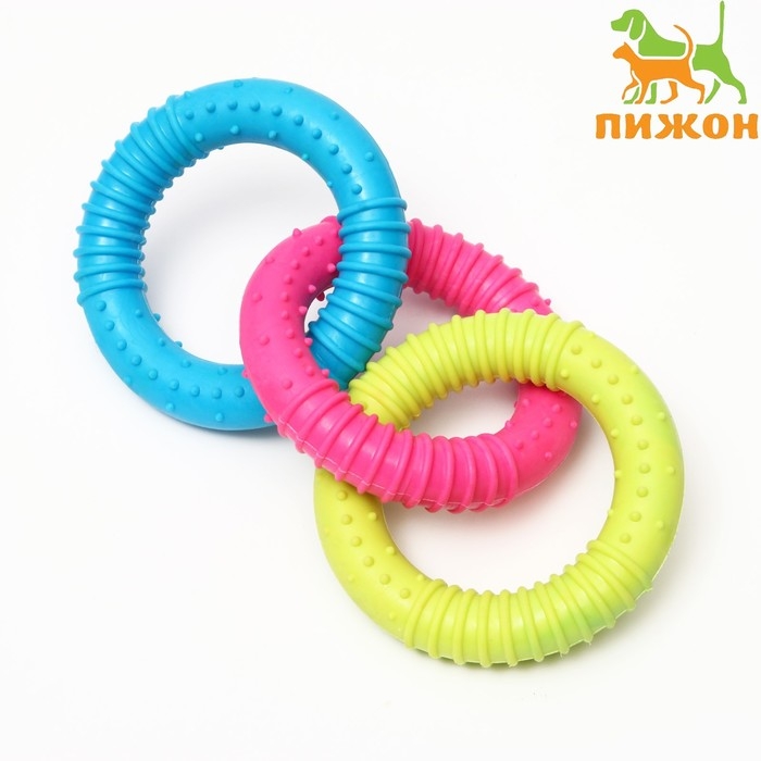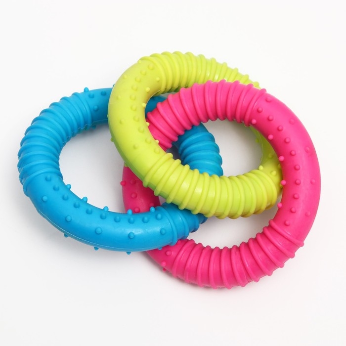 Игрушка жевательная "Всегда вместе!", TPR, 3 кольца по 8 см, сине/розово/жёлтая