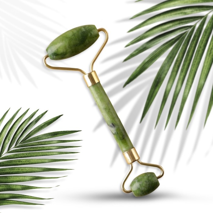 Роликовый массажёр сделан из натуральных камней – кальцита и серпентина. Ролик помогает снять отёчность лица, уменьшает количество морщин, подтягивает кожу, тонизирует её. Способ применения: очистите лицо, нанесите увлажняющую сыворотку или масло. Возьмите массажёр и начните мягко нажимать на него. Двигайтесь по массажным линиям по 3 раза. Для придания коже тонуса массажёр можно положить в холодильник, если хочется расслабления, то лучше предварительно подержать его под теплой водой.
