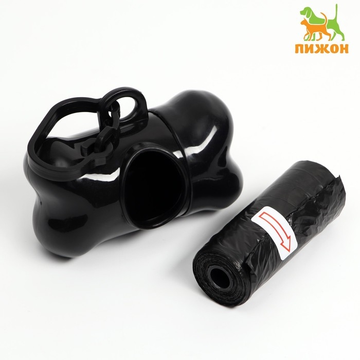 Контейнер-косточка с мешками для уборки (рулон 15 пакетов 29х21 см), чёрный