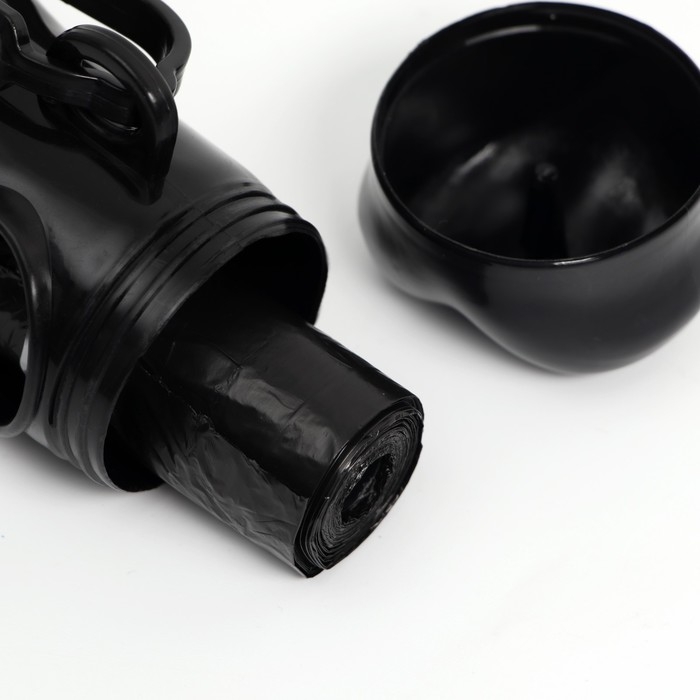 Этот аксессуар сочетает в себе прочность и легкость благодаря материалам из пластика и полиэтилена. Черный цвет и компактные размеры (8 x 3,5 x 3,5 см) делают его незаметным, но всегда готовым к использованию. Весит всего 37 граммов, что делает его практически невесомым на поводке вашего любимца.