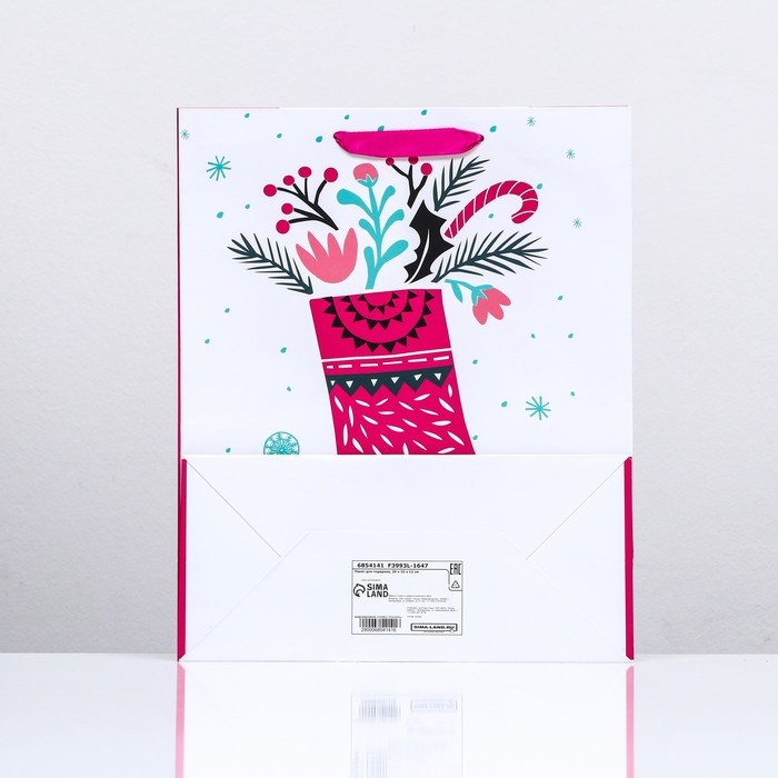 Стильный новогодний пакет с ламинацией используют как упаковку для подарка. Благодаря своему оригинальному дизайну и привлекательному внешнему виду он создаст праздничное настроение получателю и не оставит его равнодушным.