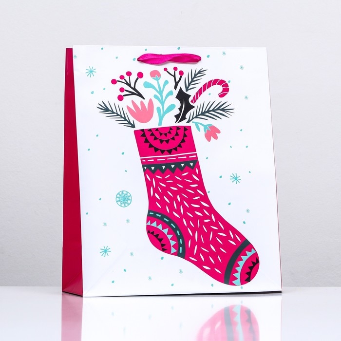Новый год. Пакет ламинированный "Подарочный носочек" 26 x 32 x 12