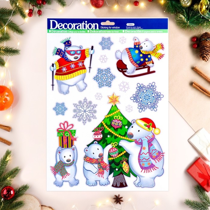 Наклейки на окна "Новогодние" белые мишки, 41 х 29 см
