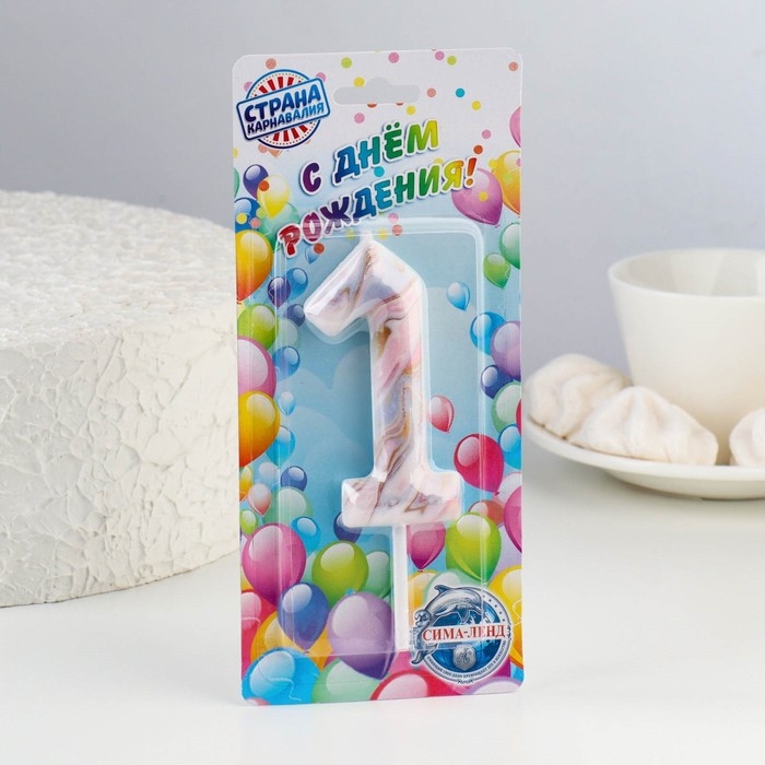 Свеча в торт "Белый мрамор", цифра "1", ГИГАНТ, 12,5 см