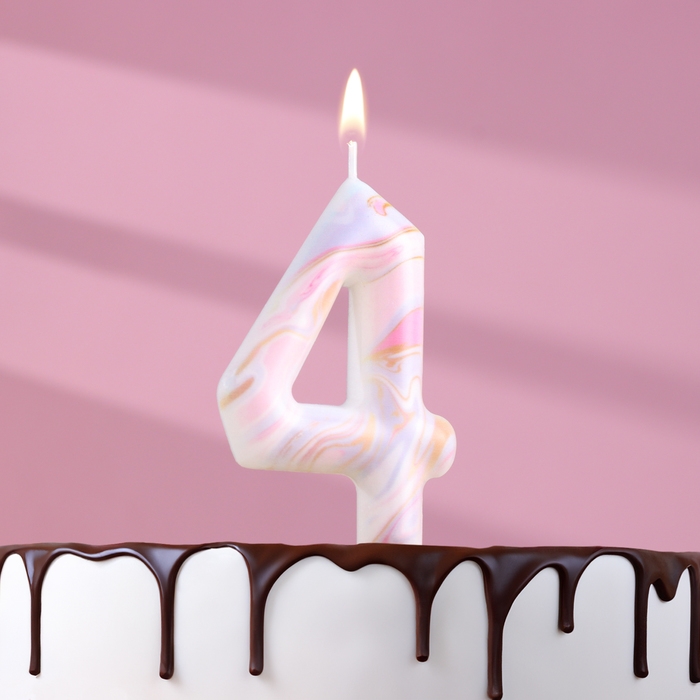 Свеча в торт "Белый мрамор", цифра "4", ГИГАНТ, 9 см