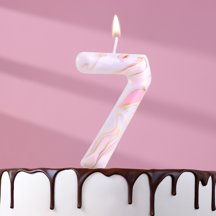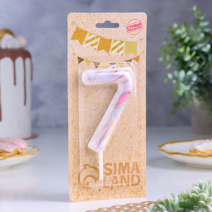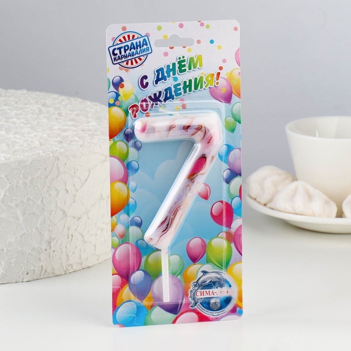 Свеча в торт "Белый мрамор", цифра "7", ГИГАНТ, 9 см