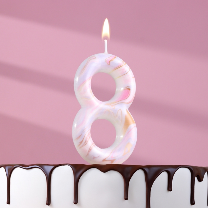 Свеча в торт "Белый мрамор", цифра "8", ГИГАНТ, 9 см