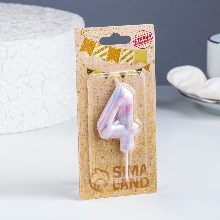 Свеча в торт "Белый мрамор", цифра "4", 5,5 см
