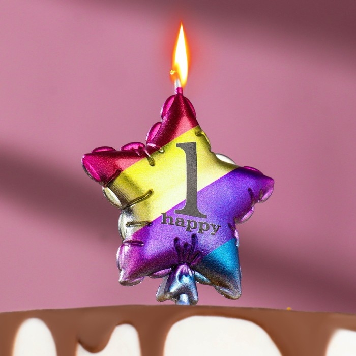 Свеча в торт "Воздушный шарик. Звезда", цифра "1", 5,5 см, разноцветная