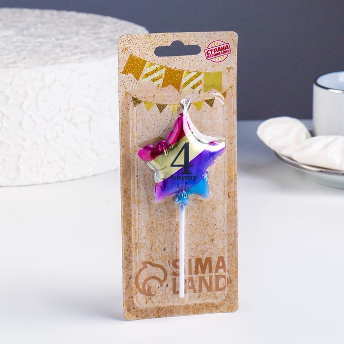 Свеча в торт "Воздушный шарик. Звезда", цифра "4", 5,5 см, разноцветная