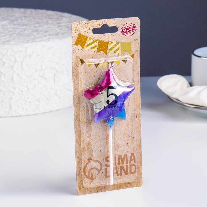 Свеча в торт "Воздушный шарик. Звезда", цифра "5", 5,5 см, разноцветная