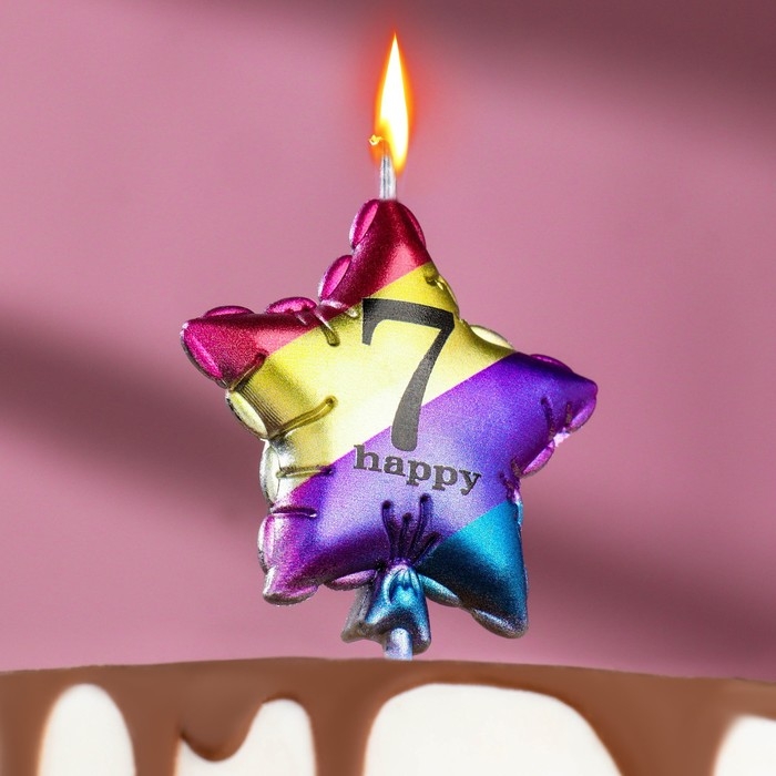 Свеча в торт "Воздушный шарик. Звезда", цифра "7", 5,5 см, разноцветная