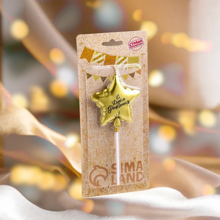 Свеча в торт "Воздушный шарик. Звезда", 7 см, золотая