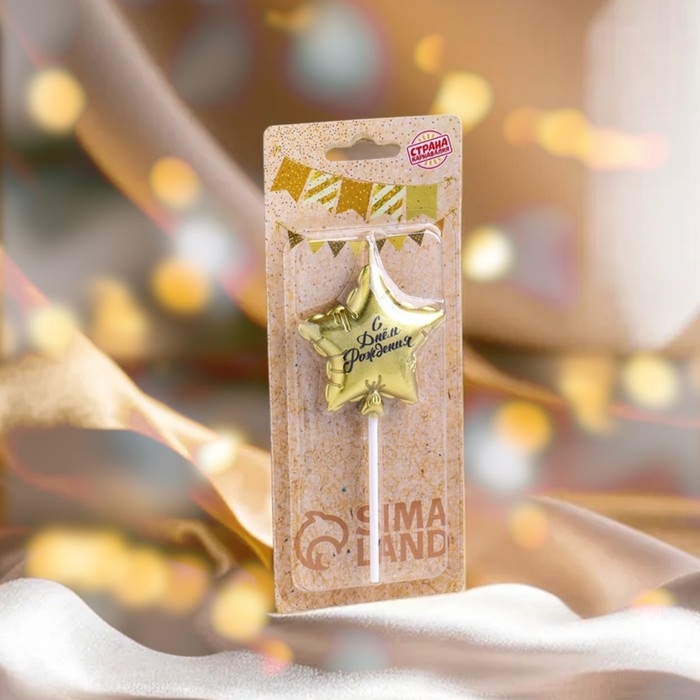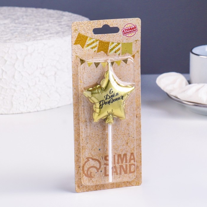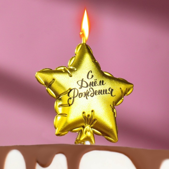 Свеча в торт "Воздушный шарик. Звезда", 7 см, золотая