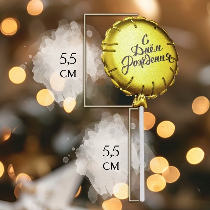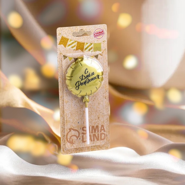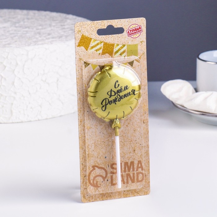 Свеча в торт "Воздушный шарик", 5,5 см, золотая