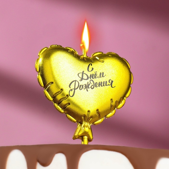 Свеча в торт "Воздушный шарик. Сердечко", 5,5 см. золотая