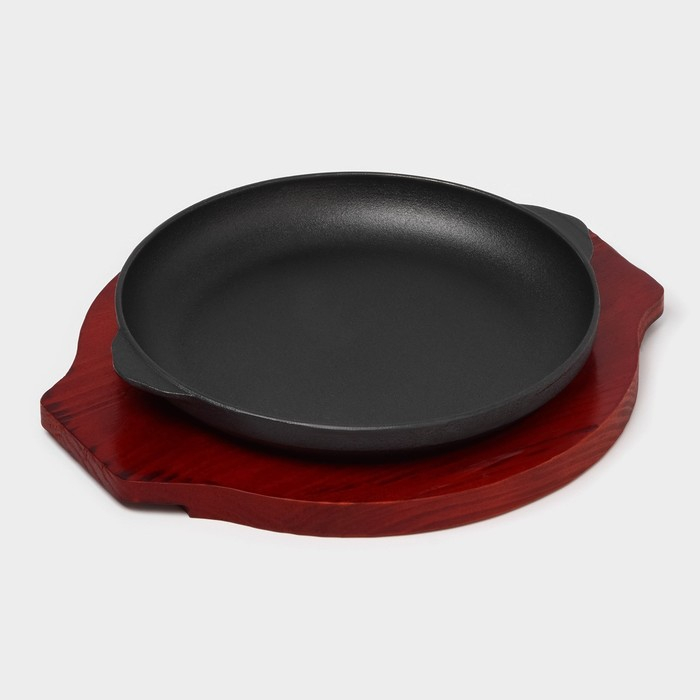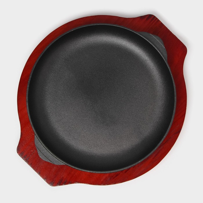 Сковорода чугунная «Круг», d=20,5 см, на деревянной подставке