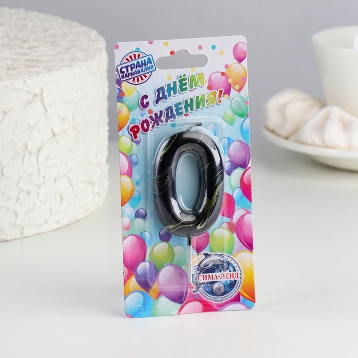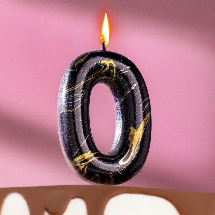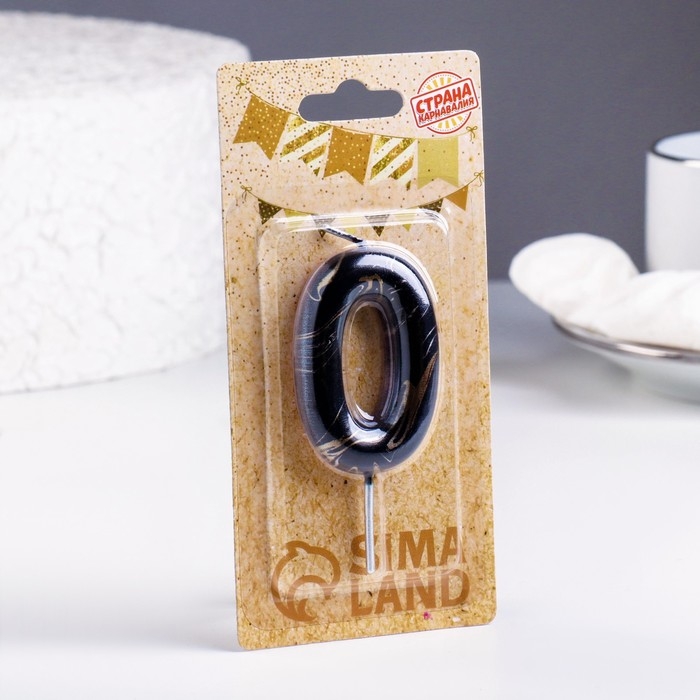 Свеча в торт "Черный мрамор", цифра "0", 5,5 см