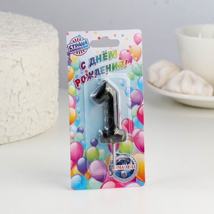 Свеча в торт "Черный мрамор", цифра "1", 5,5 см