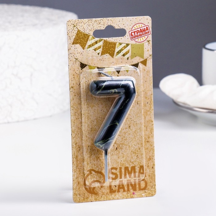 Свеча в торт "Черный мрамор", цифра "7", 5,5 см