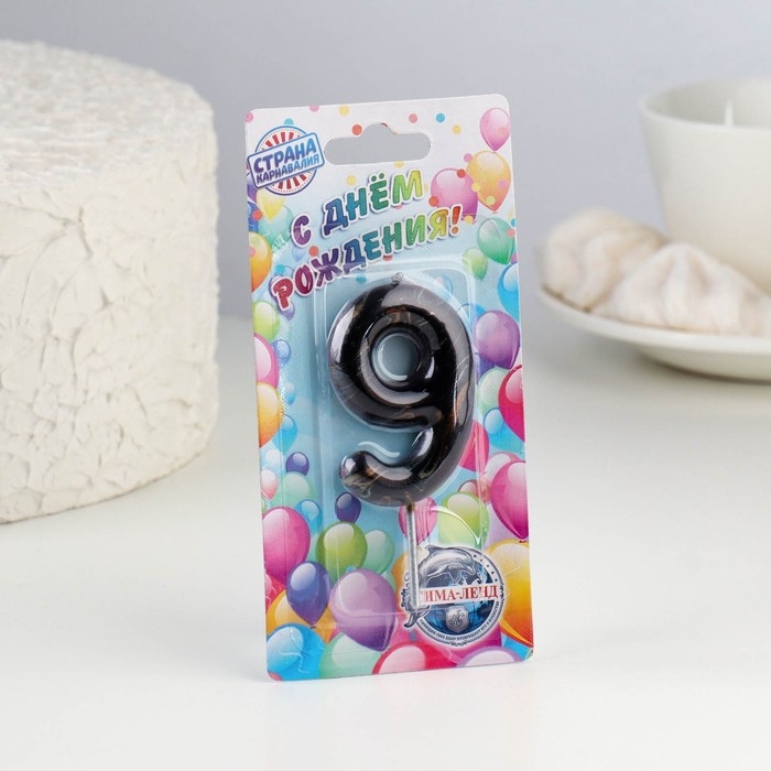 Свеча в торт "Черный мрамор", цифра "9", 5,5 см