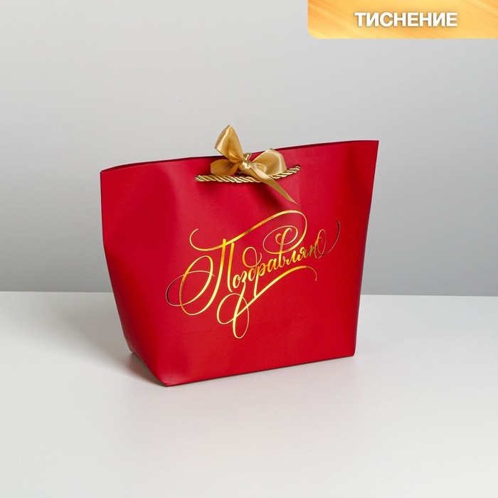 Пакет подарочный, упаковка, «Поздравляю», 19 х 20 х 9 см