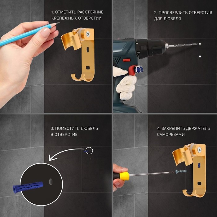 Держатель для душевой лейки ZEIN Z70, регулируемый с крючком, алюминий, золотой