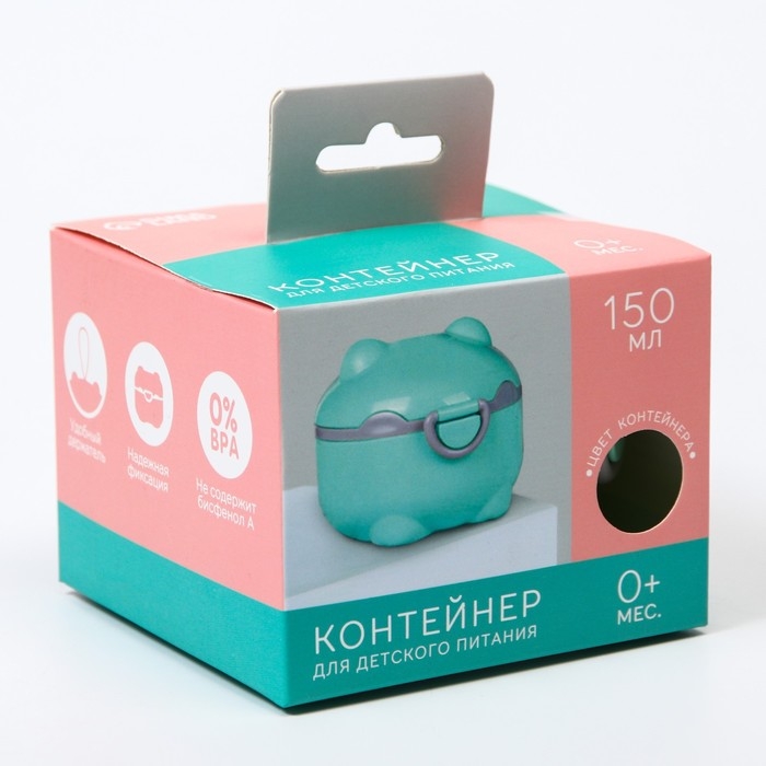 Контейнер для детского питания Мишка 2, 150 мл, цвет бирюзовый