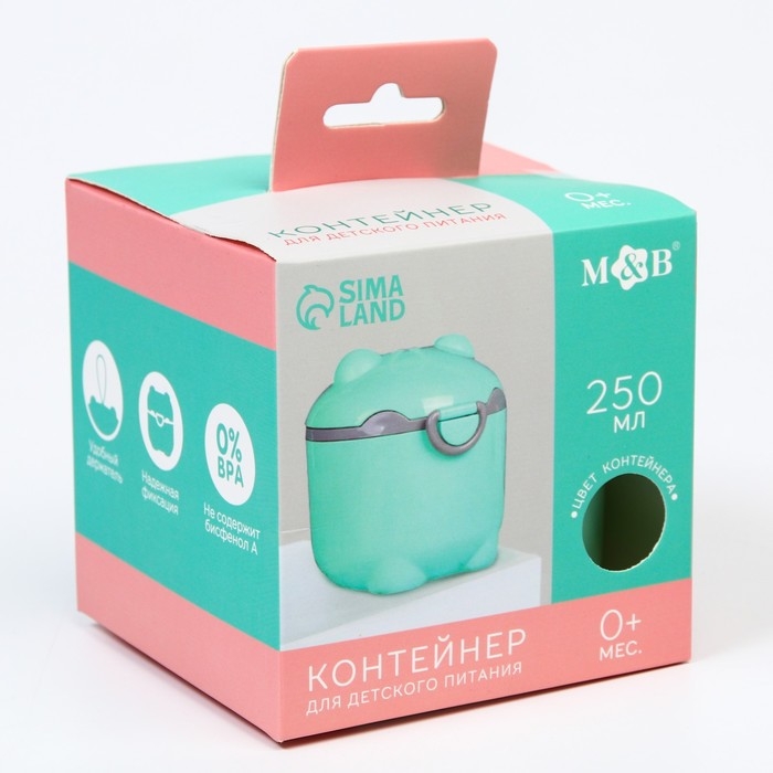 Контейнер для детского питания Мишка 2, 250 мл, цвет бирюзовый