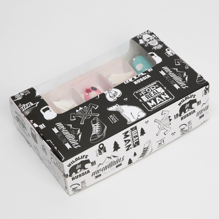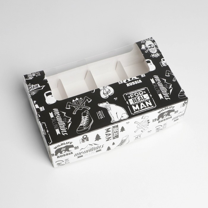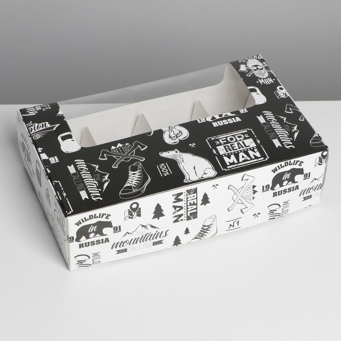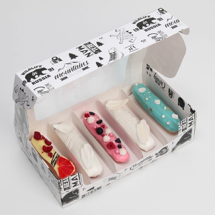 Коробка для эклеров, кондитерская упаковка, 5 вкладышей, MАN PATTERN, 25.2 х 15 х 7 см