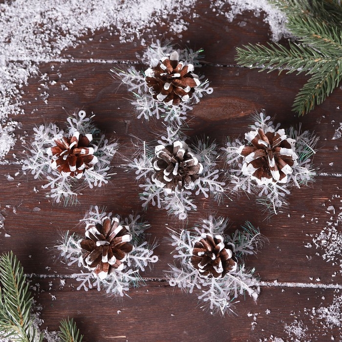 Декоративное украшение «Шишка со снежинкой» 1 шт.