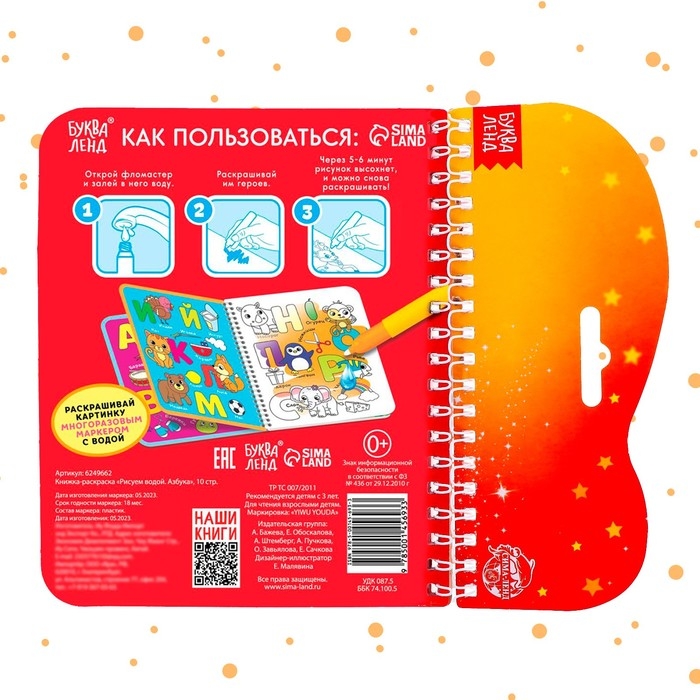 Книжка-раскраска многоразовая «Рисуем водой. Азбука», 10 стр.