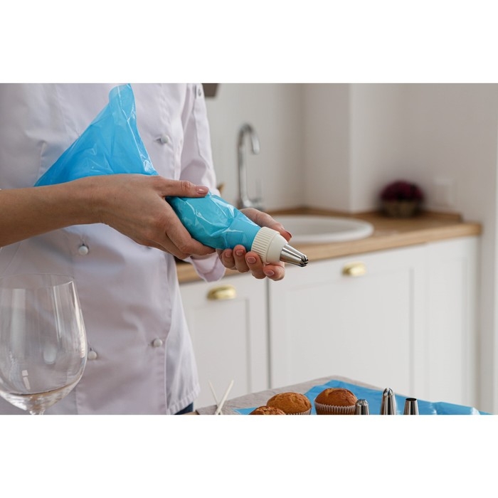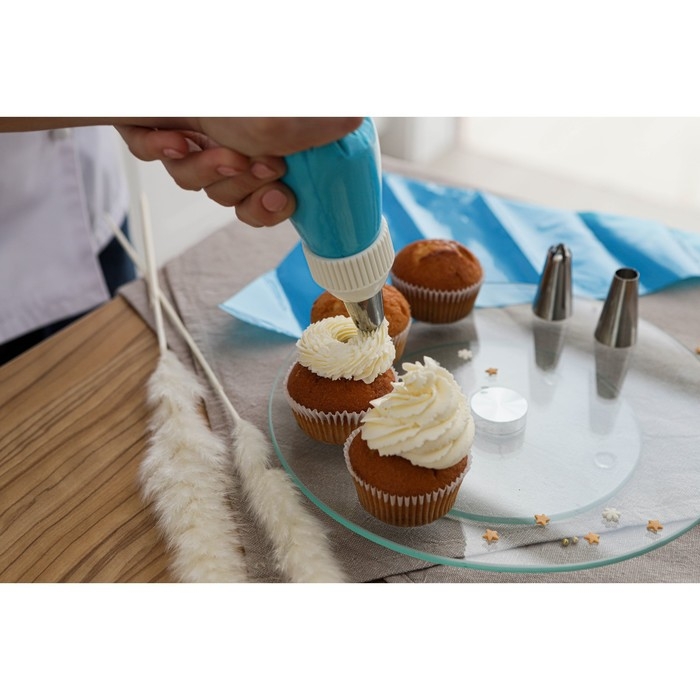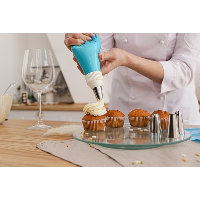 Набор предназначен для украшения выпечки и готовых кондитерских изделий. Наполните мешок айсингом, кремом или мастикой, выберите насадку — и приступайте к созданию кулинарного шедевра!