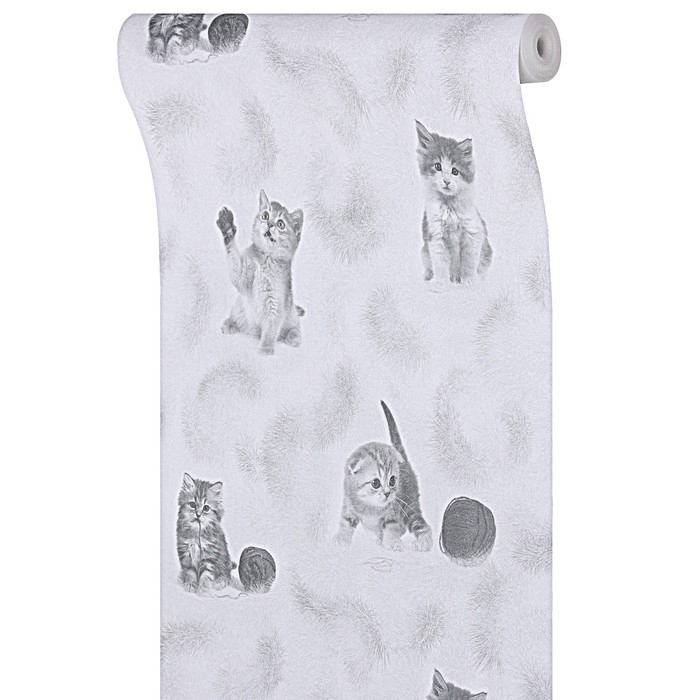 Бумажные обои Котята 255-01, 0,53х10,05м, серый