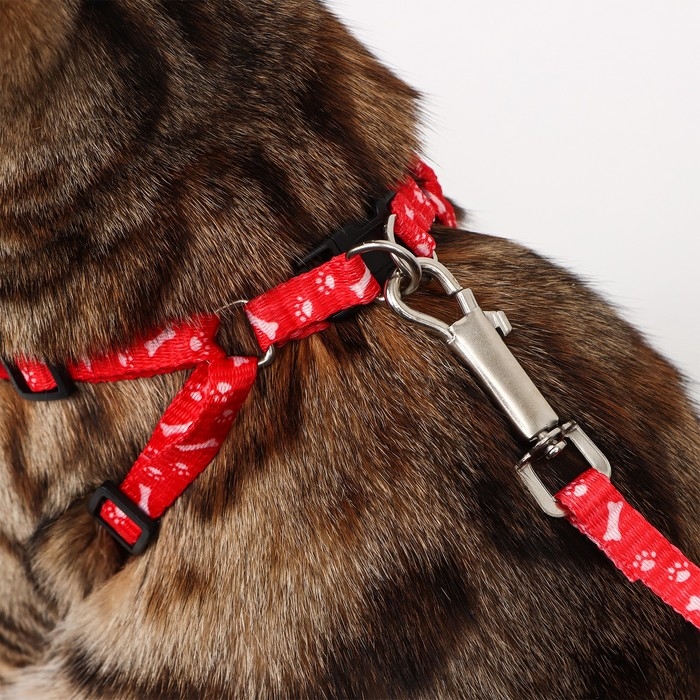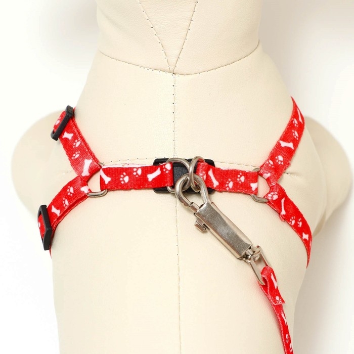 Комплект амуниции с мягкой шлейкой, L, поводок 120 х 1,5 см, ОШ 30-50 см, ОГ 36-56 см, красный 473