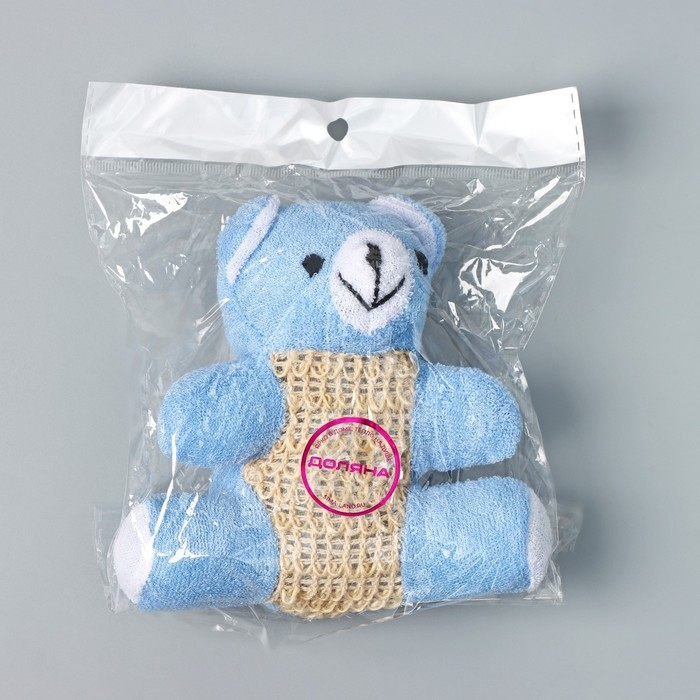 Мочалка для тела детская Доляна «Мишутка», сизаль, 10,5×11,5 см, цвет голубой