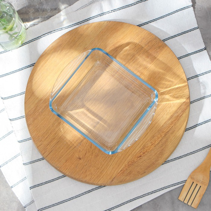 Лоток из жаропрочного стекла с крышкой Borcam, 2 л, 22×22 см, квадратный