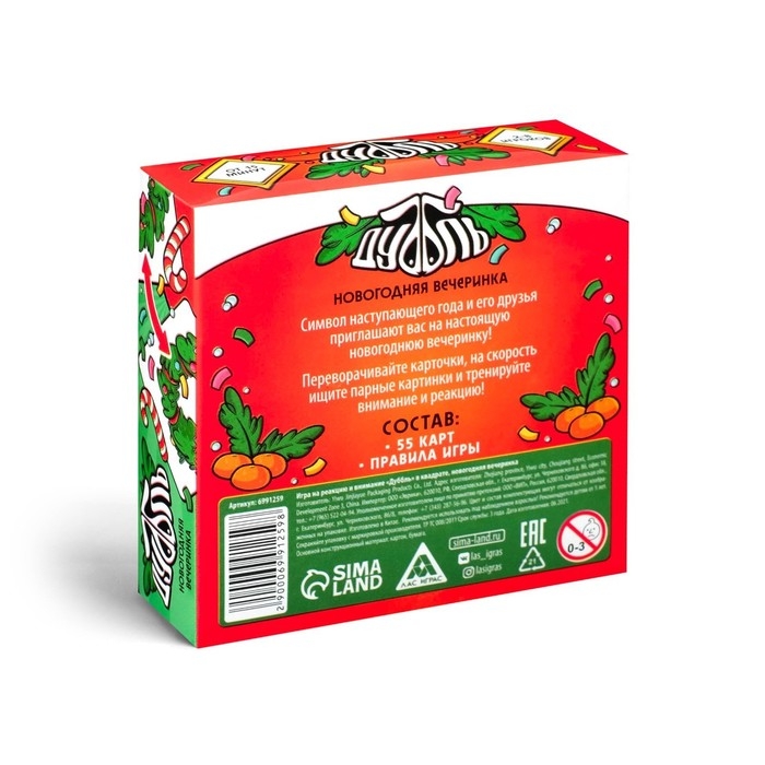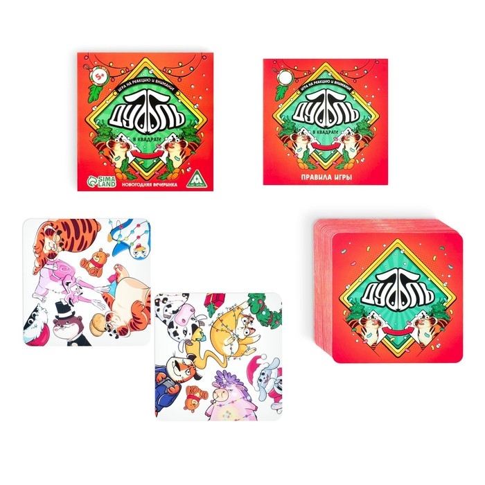 Игра на реакцию и внимание «Дуббль в квадрате. Новогодняя вечеринка», 55 карт, 5+