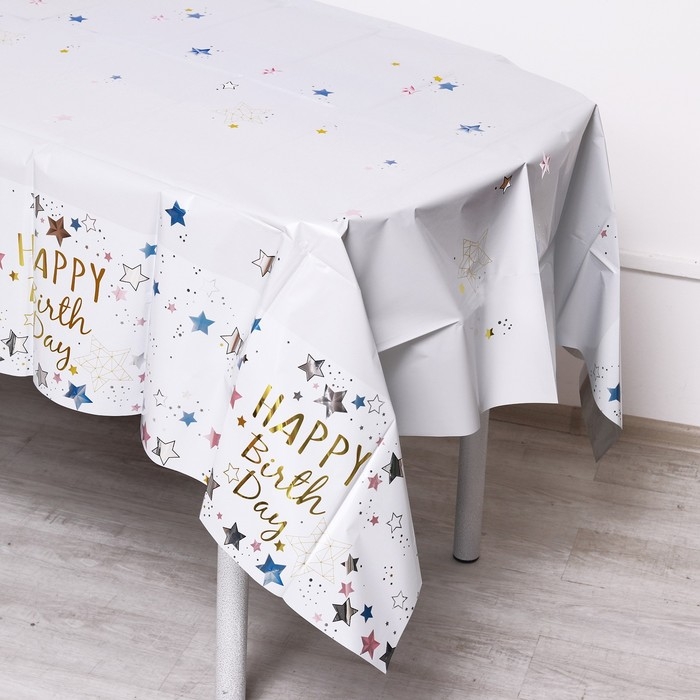 Скатерть «С днём рождения», 137 × 183 см, цвет белый