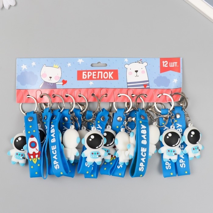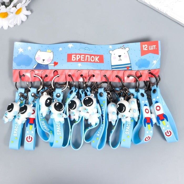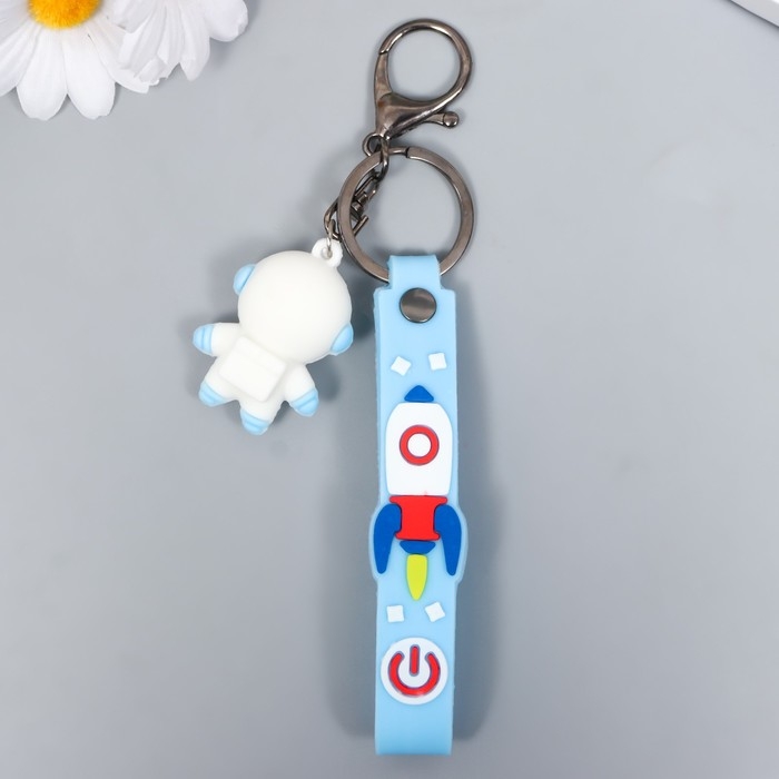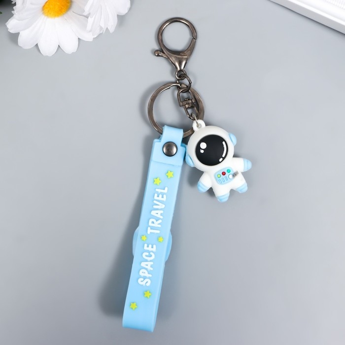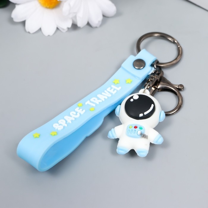 Брелок резина "Космонавт в бело-голубом скафандре" с браслетом и карабином 4,5х2,4х3,2см МИКС